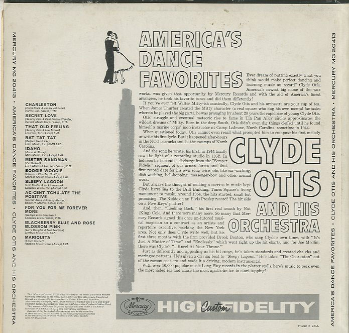 Discographie von Clyde Otis![]() Mercury MG 20413 Clyde Otis America´s Dance Favorites Eintrag bei DISCOGS (extern) US 1959, LP, Instrumental Aufnahme: Mono Zustand: vg+ / vg+ mit Secret Love, Mister Sandman u.a.m. Preis in Euro: 4,50 € Verfügbarkeitsanfrage | ![]() Coveransicht: Clyde Otis - America´s Dance Favorites ![]()