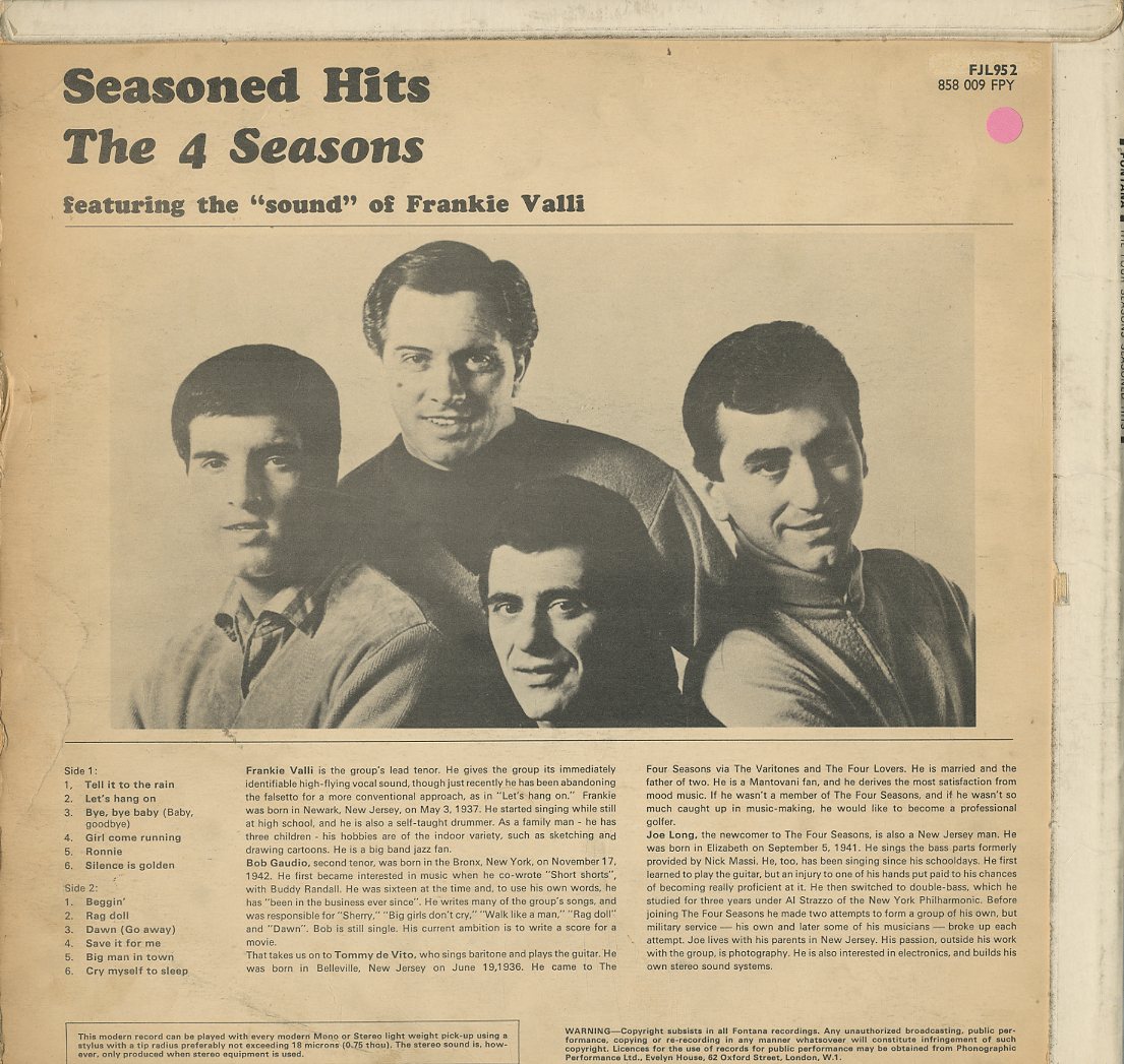 Discographie von The Four Seasons![]() Fontana SFJL.952 The Four Seasons Seasoned Hits Eintrag bei DISCOGS (extern) NL 1967, LP, US-Rock Aufnahme: Stereo Zustand: vg+ / vg (Rücks. vergilbt) u.a. Let´s Hang On, Silence Is Golden, Bye Bye Baby Preis in Euro: 6,00 € Verfügbarkeitsanfrage | ![]() Coveransicht: The Four Seasons - Seasoned Hits ![]()