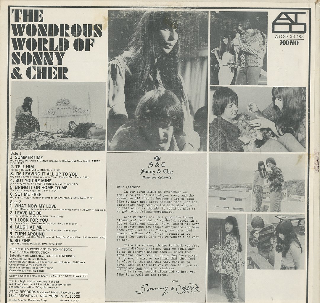 Discographie von Sonny & Cher![]() Atco 33 183 Sonny & Cher The Wondrous World of Sonny & Cher Eintrag bei DISCOGS (extern) US 1966, LP, Pop/Rock Aufnahme: Mono Zustand: vg S.2, vg+ S. 1 / / vg+ u.a. Summertime, Tell Him, Im Leaving It All up to You, Bring It on Home to Me u.a. Diese Platte ist zur Zeit vergriffen. | ![]() Coveransicht: Sonny & Cher - The Wondrous World of Sonny & Cher ![]()