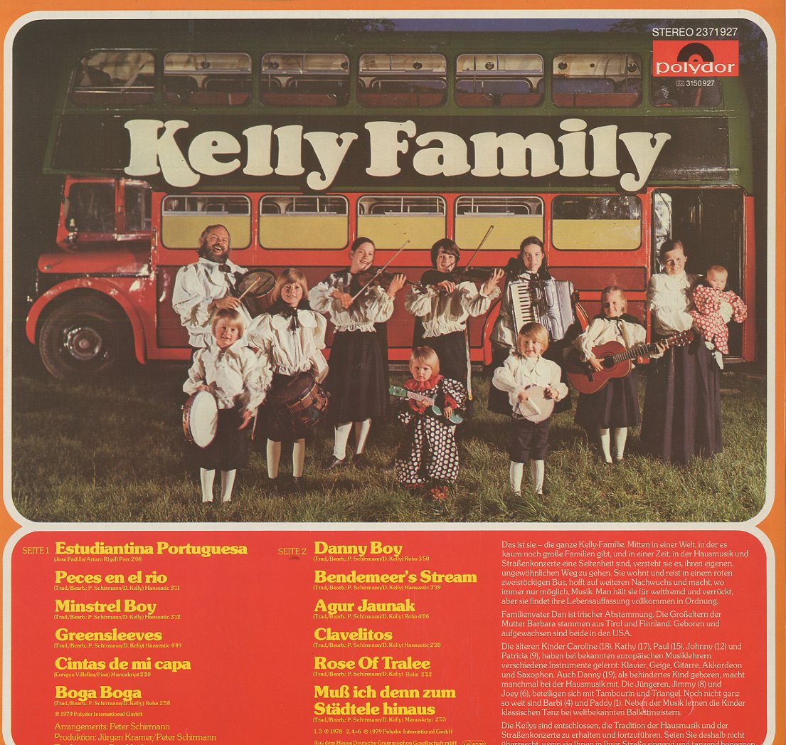 Discographie von Kelly Family![]() Polydor 2371 927 Kelly Family The Kelly Family Eintrag bei DISCOGS (extern) D 1979, LP, Pop/Rock Aufnahme: Stereo Zustand: m- / mint- u.a. Estudiantina Portuguesa, Greensleeves, Danny Boy, Muss I denn zum Staedtele hinaus Preis in Euro: 5,00 € Verfügbarkeitsanfrage | ![]() Coveransicht: Kelly Family - The Kelly Family ![]()