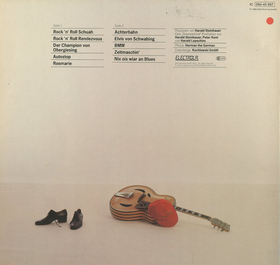 ![]() Electrola 1 C 064-45997 A Spider Murphy Gang Rock´n´Roll Schuah Eintrag bei DISCOGS (extern) D 1980, LP, Deutsche Oldies Aufnahme: Stereo Zustand: vg+ / vg (+) (Ecke unten rechts geklebt) sowie Rock´n´Roll Rendevouz; Elvis von Schwabing; Nix ois wiar an Blues Texte auf Innenhülle Preis in Euro: 4,00 € Verfügbarkeitsanfrage | ![]() Coveransicht: Spider Murphy Gang - Rock´n´Roll Schuah ![]()