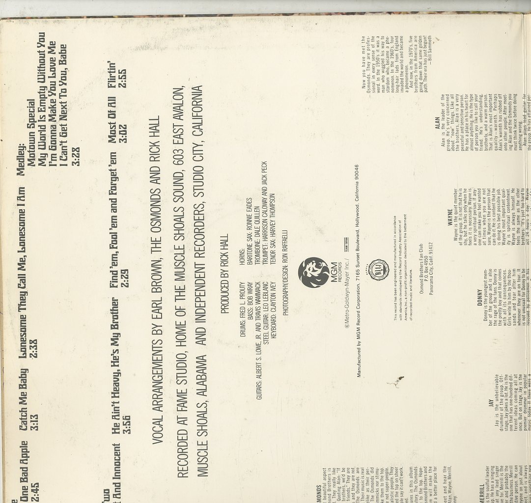 Discographie von The Osmonds![]() MGM 2315 038 The Osmonds Osmonds Eintrag bei DISCOGS (extern) US 1971, LP, Pop/Rock Aufnahme: Stereo Zustand: vg+ / vg+ u.a. One Bad Apple, He Aint Heavy Hes My Brother, Motown Special Klappcover mit Kurzbios der 5 Osmonds Preis in Euro: 4,50 € Verfügbarkeitsanfrage | ![]() Coveransicht: The Osmonds - Osmonds ![]()