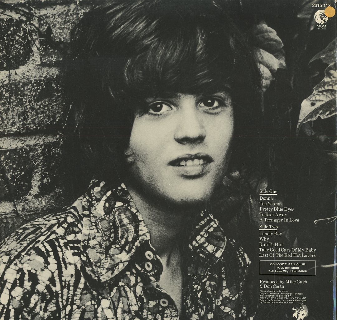 Discographie von Donny Osmond![]() MGM MGM 2315 113 Donny Osmond Too Young Eintrag bei DISCOGS (extern) D 1972, LP, Pop/Rock Aufnahme: Stereo Zustand: vg / vg+ Katalogpreis: vg+/vg+ sowie A Teenager in Love, Lonely Boy, Run to Him Preis in Euro: 3,00 € Verfügbarkeitsanfrage | ![]() Coveransicht: Donny Osmond - Too Young ![]()
