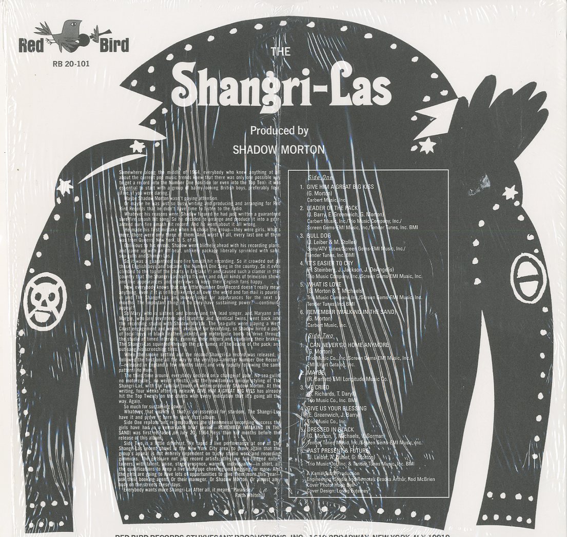 | Discographie von The Shangri-Las Red Bird RB 20101 The Shangri-Las Leader Of the Pack (Fehldruck) Review der Schallplatte (extern) Eintrag bei DISCOGS (extern) US RI 2000 (Orig. 1965), LP, US-Rock Aufnahme: Stereo Zustand: m- / mint -Cover noch in Zellophan sowie Remember (Walking In The Sand), Twist and Shout, Shout u.a.m. Fehldruck auf Cover: andere Titel für S. 2 genannt, Platte entspricht den Titeln auf dem Label Auf dem Cover andere Titel für S. 2 genannt, Platte entspricht den Titeln auf dem Label Diese Platte ist zur Zeit vergriffen. | ![]() Coveransicht: The Shangri-Las - Leader Of the Pack (Fehldruck) ![]()