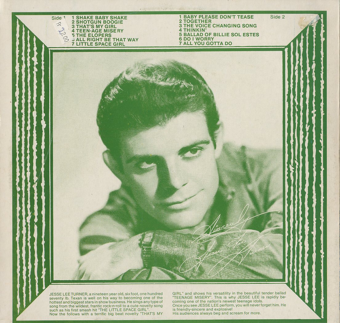 | Discographie von Jesse Lee Turner Turner Records 8011 Jesse Lee Turner Shake Baby Shake Review der Schallplatte (extern) Eintrag bei DISCOGS (extern) n/a 1981, LP, US-Rock Aufnahme: Mono Zustand: m- / vg+ mit Teenage Misery, Little Space Girl u.a. (Aufn. 1958 - 62) vermutlich Originalaufn. im Eigenverlag - Angaben unter dem Review-Link Preis in Euro: 7,00 € Verfügbarkeitsanfrage | ![]() Coveransicht: Jesse Lee Turner - Shake Baby Shake ![]()
