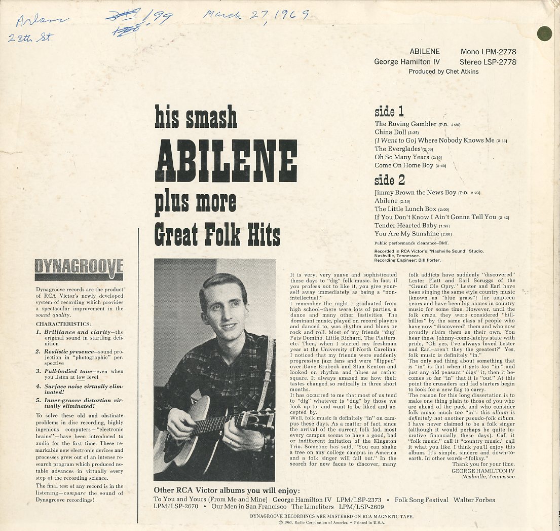 Verfügbarkeitsanfrage |  Coveransicht: George Hamilton IV - Abilene