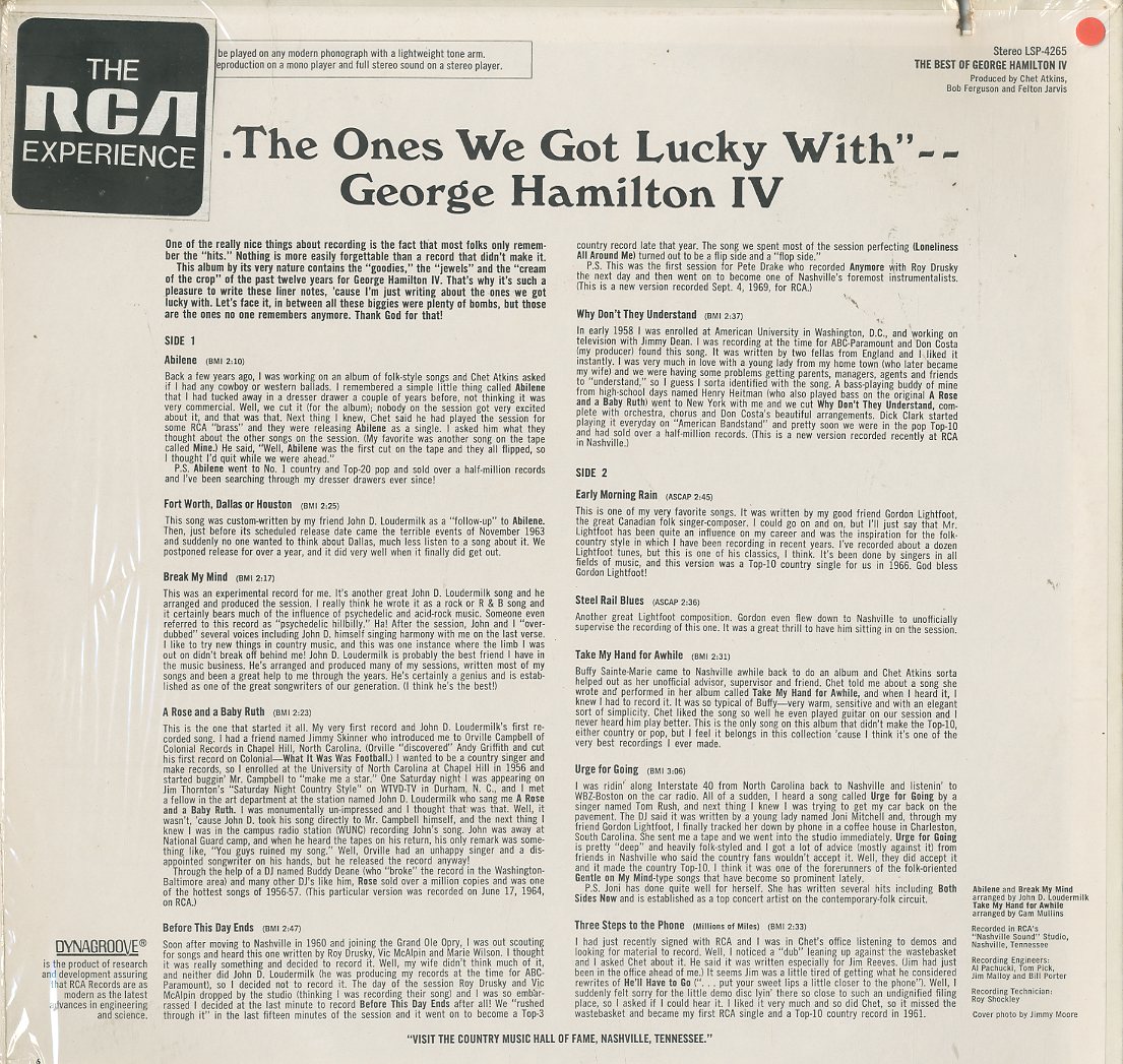 Weitere Schallplatten von George Hamilton IV in meinem Angebot