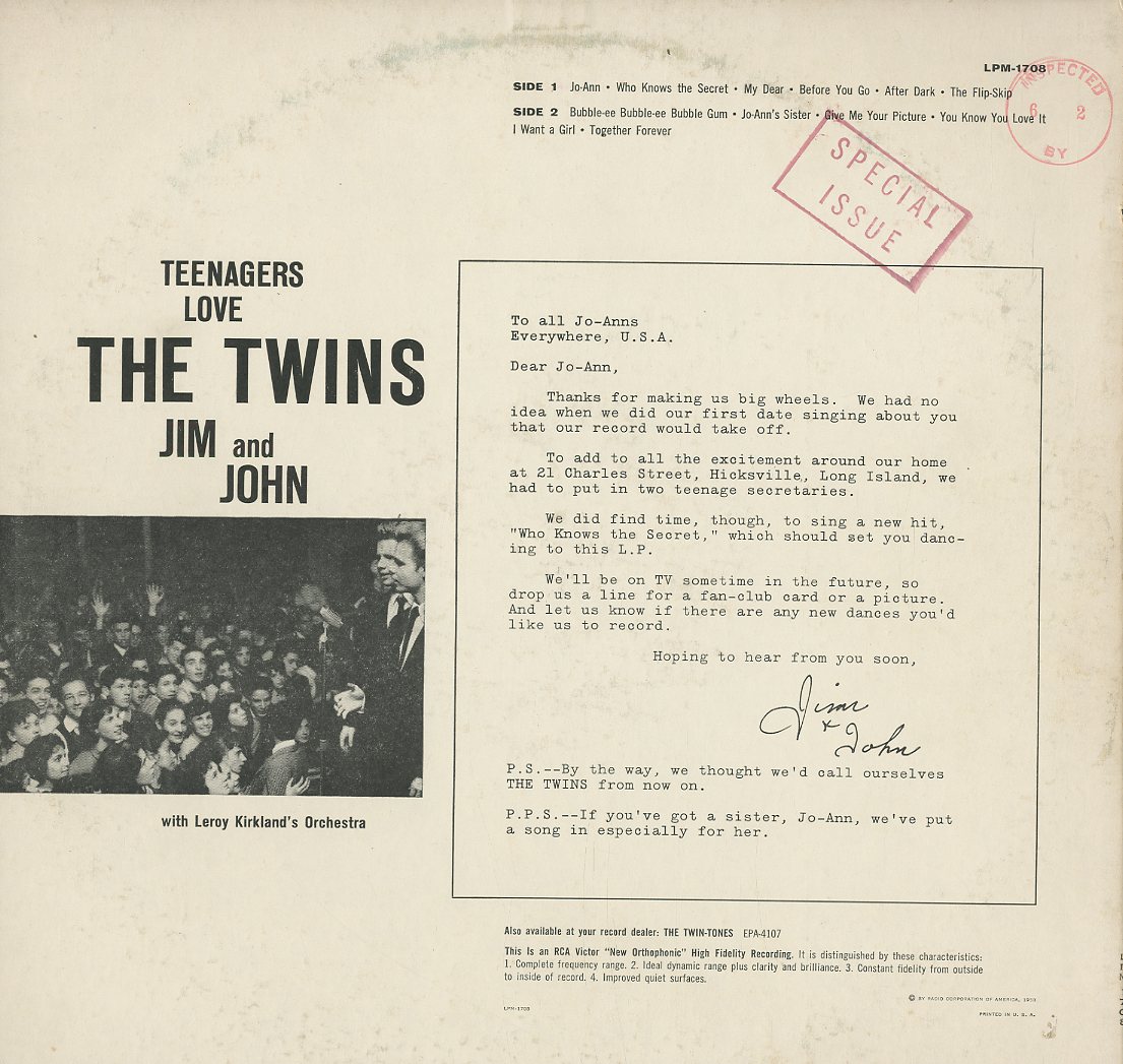 Verfügbarkeitsanfrage |  Coveransicht: The Twins (Jim and John) - Teenagers Love the Twins