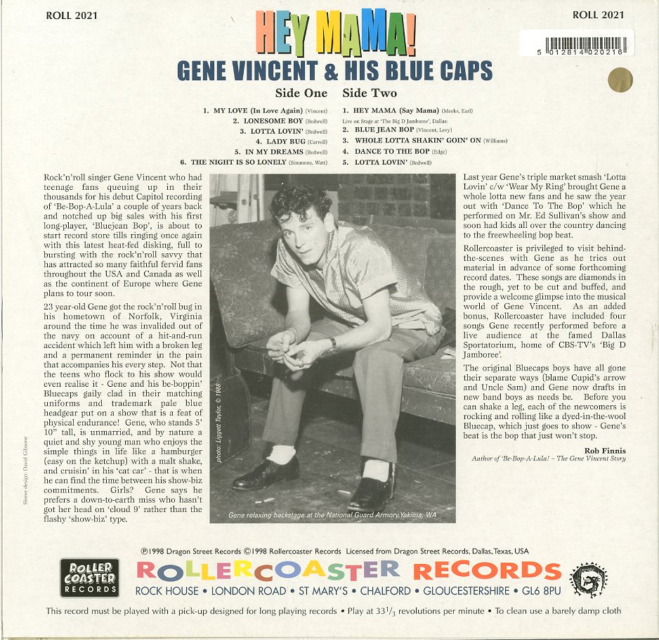 | Discographie von Gene Vincent Roller Coaster ROLL 2021 Gene Vincent Hey Mama (25 cm) Eintrag bei DISCOGS (extern) US 1998, LP, US-Rock Aufnahme: Mono Zustand: vg+ / m- Gene Vincent & His Blue Caps mit Demos: Lotta Lovin, The Night Is So Lonely, Hey Mama (Say Mama) + 4 Live Aufn. Blujean Bop , Whole Lotta Shakin Goin On u.a. Preis in Euro: 10,00 € Verfügbarkeitsanfrage | ![]() Coveransicht: Gene Vincent - Hey Mama (25 cm) ![]()