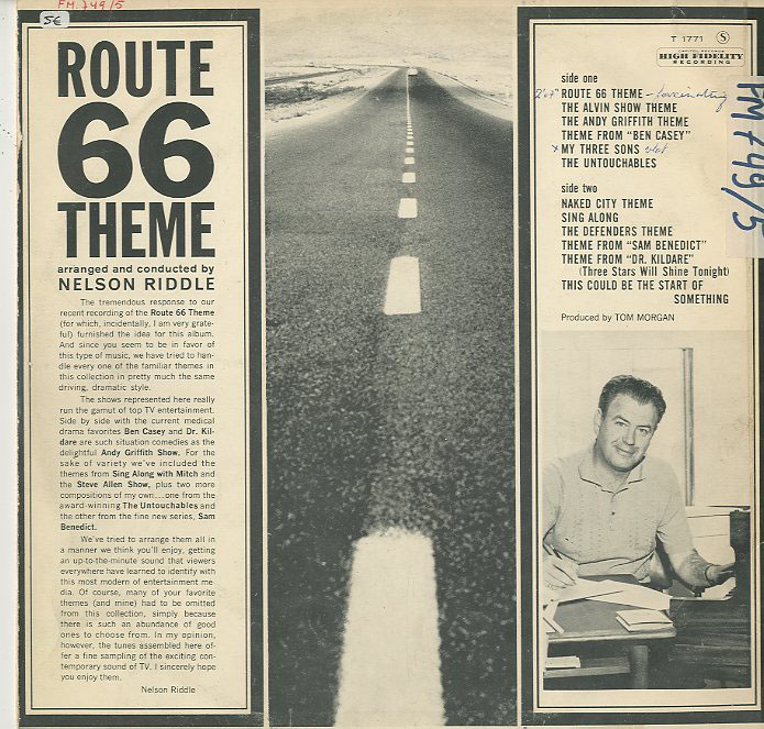 Discographie von Nelson Riddle![]() Capitol Records T 1771 Nelson Riddle Route 66 Theme and Other Great TV Themes Eintrag bei DISCOGS (extern) F 1962, LP, Instrumental Aufnahme: Mono Zustand: vg+ / vg (Sticker on Cover and Label) wie Dr. Kildare, The Untouchables, Naked City u.a.m. Preis in Euro: 4,50 € Verfügbarkeitsanfrage | ![]() Coveransicht: Nelson Riddle - Route 66 Theme and Other Great TV Themes ![]()