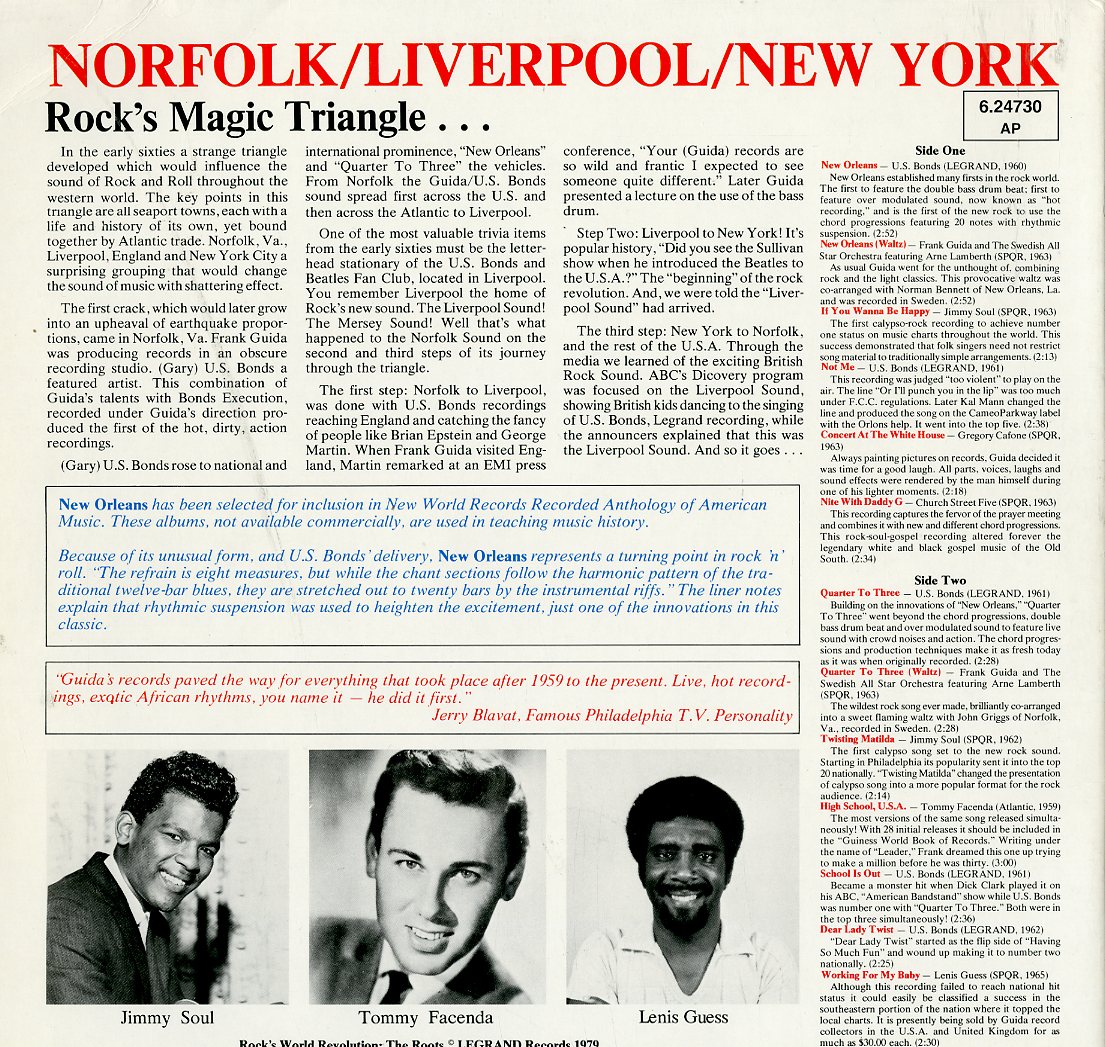 Discographie von Various Artists of the 60s![]() Strand 6.24730 Various Artists of the 60s Rock´s World Revolution: The Roots - Frank Guida Presents Greatest Hits Eintrag bei DISCOGS (extern) D 1981 (Orig.1979), LP, US-Rock Aufnahme: Stereo Zustand: vg+ ++ / m- mit 5 x Gary U.S. Bonds + Jimmy Soul, Church Street Five, Tommy Facenda u.a. Klappcover mit Frank Guida Bio + Fotos + TELDEC Infoblatt Orig. Legrand Records Preis in Euro: 5,00 € Verfügbarkeitsanfrage | ![]() Coveransicht: Various Artists of the 60s - Rock´s World Revolution: The Roots - Frank Guida Presents Greatest Hits ![]()