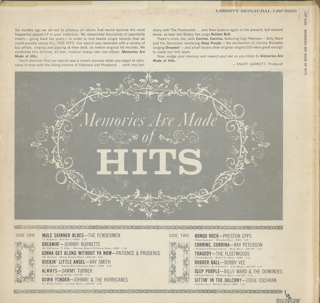 Discographie von Liberty Sampler![]() Liberty LRP 3200 Liberty Sampler The Original Hits Volume 4 (Memories Are Made Of This) Eintrag bei DISCOGS (extern) US 1961, LP, US-Rock Aufnahme: Mono Zustand: vg / vg mit The Fendermen, Johnny Burnette, Eddie Cochran u.a. Also released in 1960 as Various - Memories Are Made Of Hits with exact same track listing. Diese Platte ist zur Zeit vergriffen. | ![]() Coveransicht: Liberty Sampler - The Original Hits Volume 4 (Memories Are Made Of This) ![]()