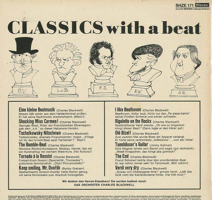 Discographie von Charles Blackwell![]() Hör zu SHZE 171 Charles Blackwell Classics with a beat Review der Schallplatte (extern) D 1964, LP, Instrumental Aufnahme: Stereo Zustand: m- Katalogpreis: 11,80 € (2009) von Mozarts Kleiner Nachtmusik über Rossinis Torento bis Bizets Ole Preis in Euro: 6 € Verfügbarkeitsanfrage | ![]() Coveransicht: Charles Blackwell - Classics with a beat ![]()