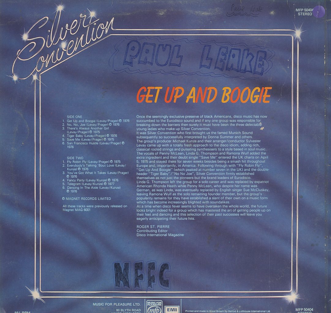 Discographie von Silver Convention![]() mfp MFP 50404 Silver Convention Get Up And Boogie Eintrag bei DISCOGS (extern) UK 1977, LP, Pop/Rock Aufnahme: Stereo Zustand: vg+ ++ / vg (Rücks. beschriftet) sowie Fly Robin Fly, San Francisco Hustle, Dancin In The aisle, Telegram u.a.m. (Aufn. 1975 - 1977)_ Keine RI des Orig. von 197, nur wenige Titel davon All these tracks were previously released on Magnet MAG 6001 Preis in Euro: 4,50 € Verfügbarkeitsanfrage | ![]() Coveransicht: Silver Convention - Get Up And Boogie ![]()