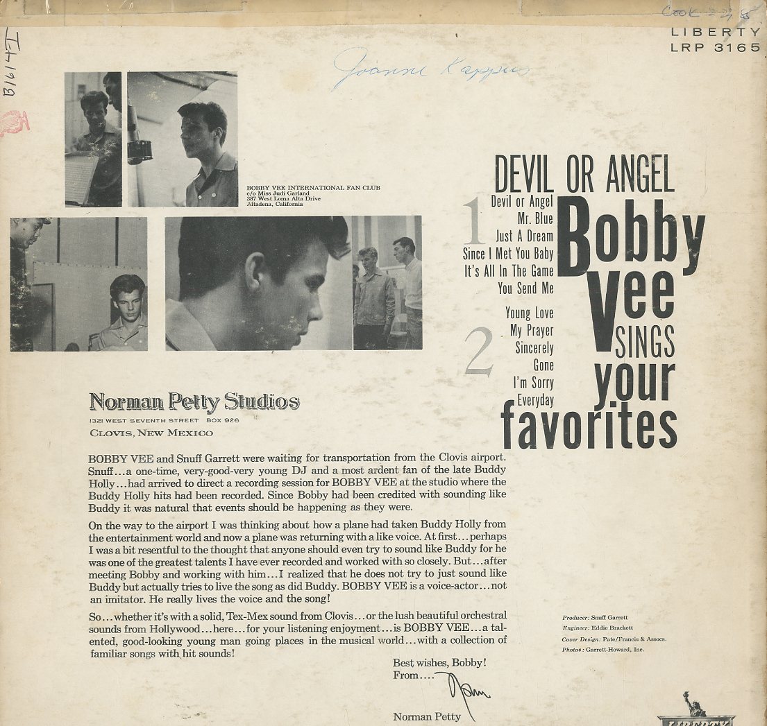 Discographie von Bobby Vee![]() Liberty LRP 3165 Bobby Vee Sings Your Favourites Eintrag bei DISCOGS (extern) US 1960, LP, US-Rock Aufnahme: Mono Zustand: vg- / vg mit Devil Or Angel, Im Sorry, Since I Met You Baby u.a. Label Varianz Diese Platte ist Bestandteil meiner Top 100. Nicht verkäuflich. | ![]() Coveransicht: Bobby Vee - Sings Your Favourites ![]()