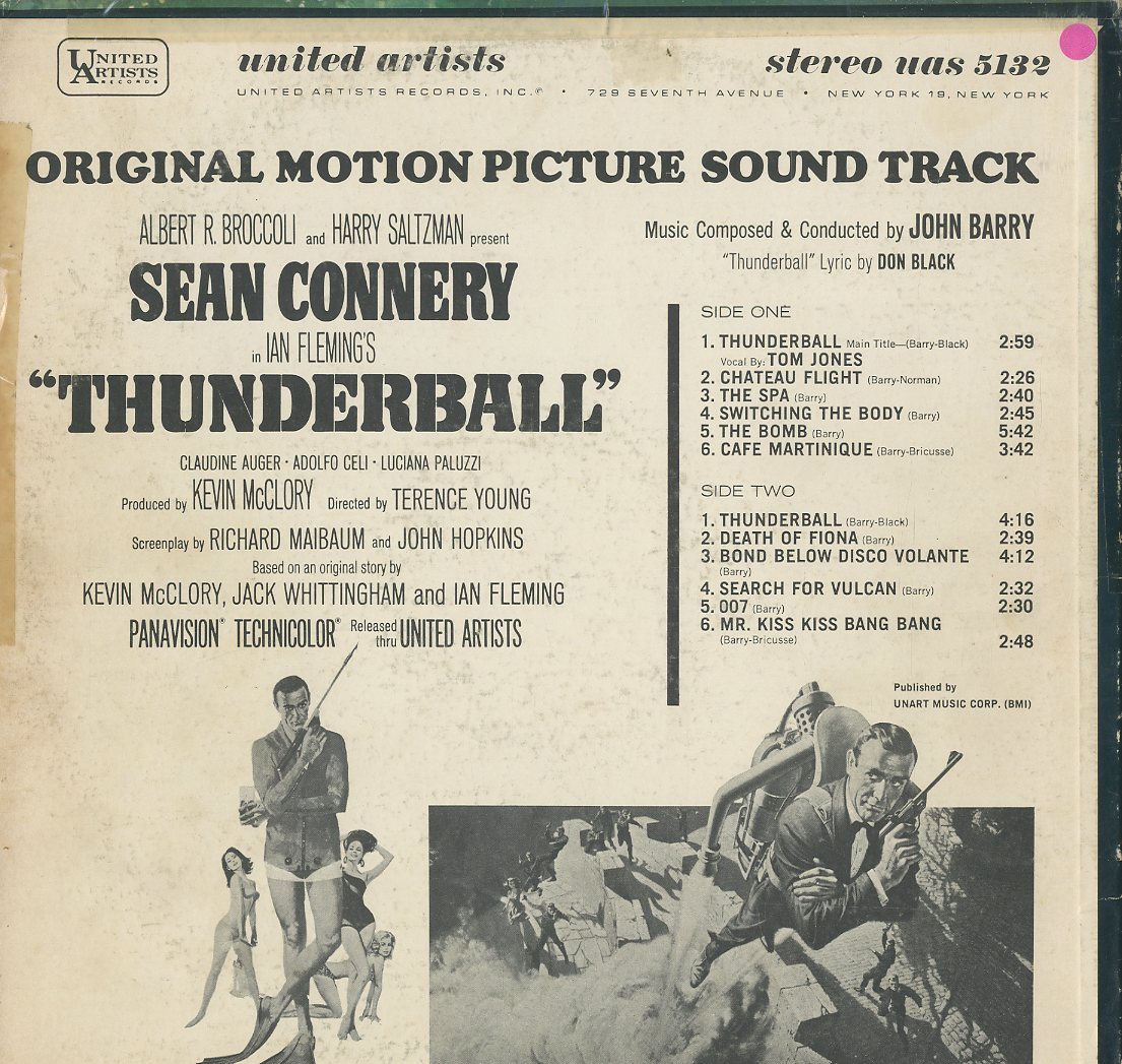 Discographie von James Bond![]() united_artists UAS 5132 James Bond Thunderball Review der Schallplatte (extern) Eintrag bei DISCOGS (extern) US 1965, LP, Soundtracks Aufnahme: Stereo Zustand: vg+ / vg (an offener Seite 5 cm geklebt) Title Song Sung By Tom Jones Preis in Euro: 5,00 € Verfügbarkeitsanfrage | ![]() Coveransicht: James Bond - Thunderball ![]()