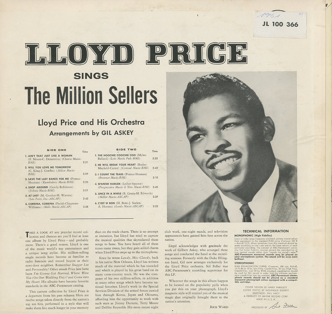 Lloyd Price - Lloyd Price Sings the Million Sellers (LP)
