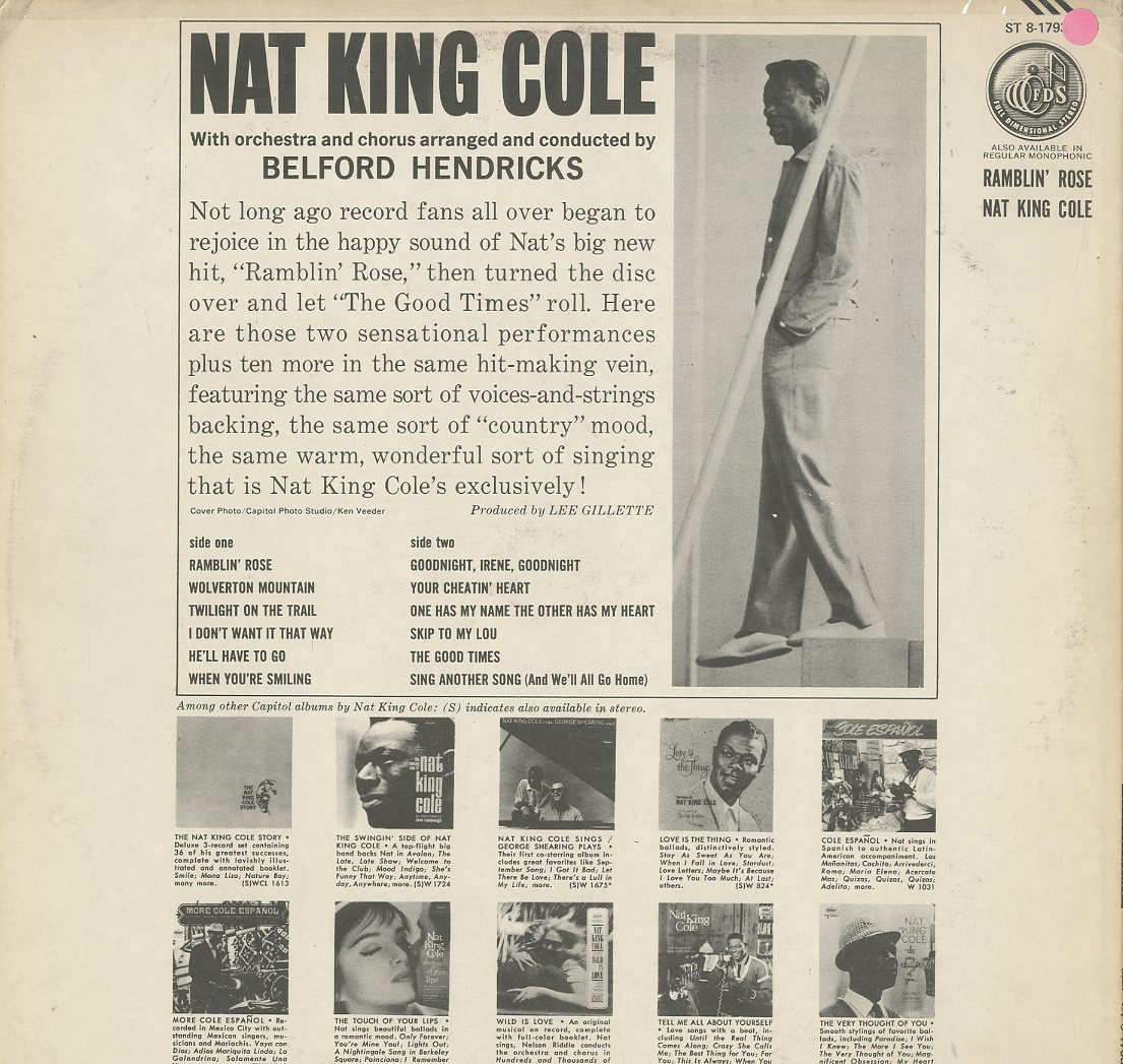 Discographie von Nat King Cole![]() Capitol ST 8 - 1793 Club Ed. Nat King Cole Ramblin´ Rose Eintrag bei DISCOGS (extern) US Club Ed. 1965 (Orig. 1961), LP, Easy Listening Aufnahme: Stereo Zustand: vg+ / vg+ sowie Wolverton Mountain; He´ll Have To Go; When Youre Smiling; Your Cheatin Heart u.a. Preis in Euro: 6,00 € Verfügbarkeitsanfrage | ![]() Coveransicht: Nat King Cole - Ramblin´ Rose ![]()