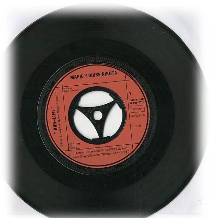 | Discographie von Marie-Luise Nikuta (Polydor) Sonderaufl. Marie-Luise Nikuta Das KVB Lied / Der alte Fiaker (Historische Aufnahme) Review der Schallplatte (extern) D 1979, Single, Deutsche Oldies Aufnahme: Mono Zustand: vg+ Verfügbarkeitsanfrage | ![]() Coveransicht: Marie-Luise Nikuta - Das KVB Lied / Der alte Fiaker (Historische Aufnahme) ![]()