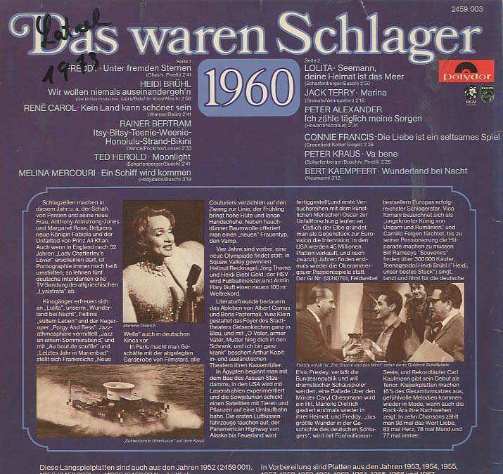 Das waren Schlager (Polydor) - Das waren Schlager 1960 (LP)