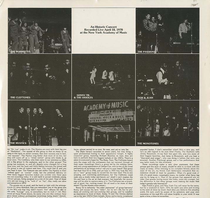 Discographie von Various R&B-Artists![]() Ariola 300 675 Various R&B-Artists The Original Rock & Roll Show (DLP) Eintrag bei DISCOGS (extern) D 1979, LP, R&B/Soul/Blues Aufnahme: Stereo Zustand: m- / vg+ A Historic Concert, Rec. live April 18, 1970, New York Academy of Music mit The Cadillacs, The Dubs, Sonny Til, The Monotones u.a. Klappcover mit Live-Fotos Preis in Euro: 7,00 € Verfügbarkeitsanfrage | ![]() Coveransicht: Various R&B-Artists - The Original Rock & Roll Show (DLP) ![]()