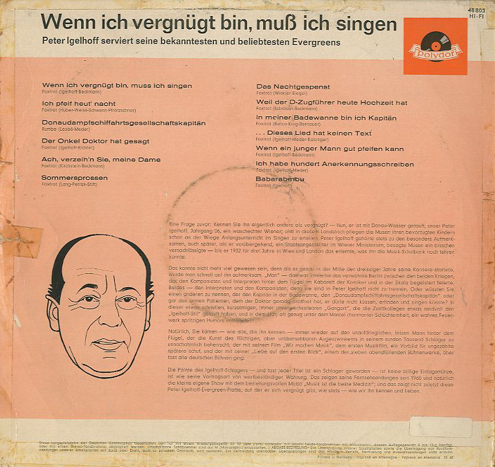Peter Igelhoff - Wenn ich vergnügt bin muss ich singen (LP)