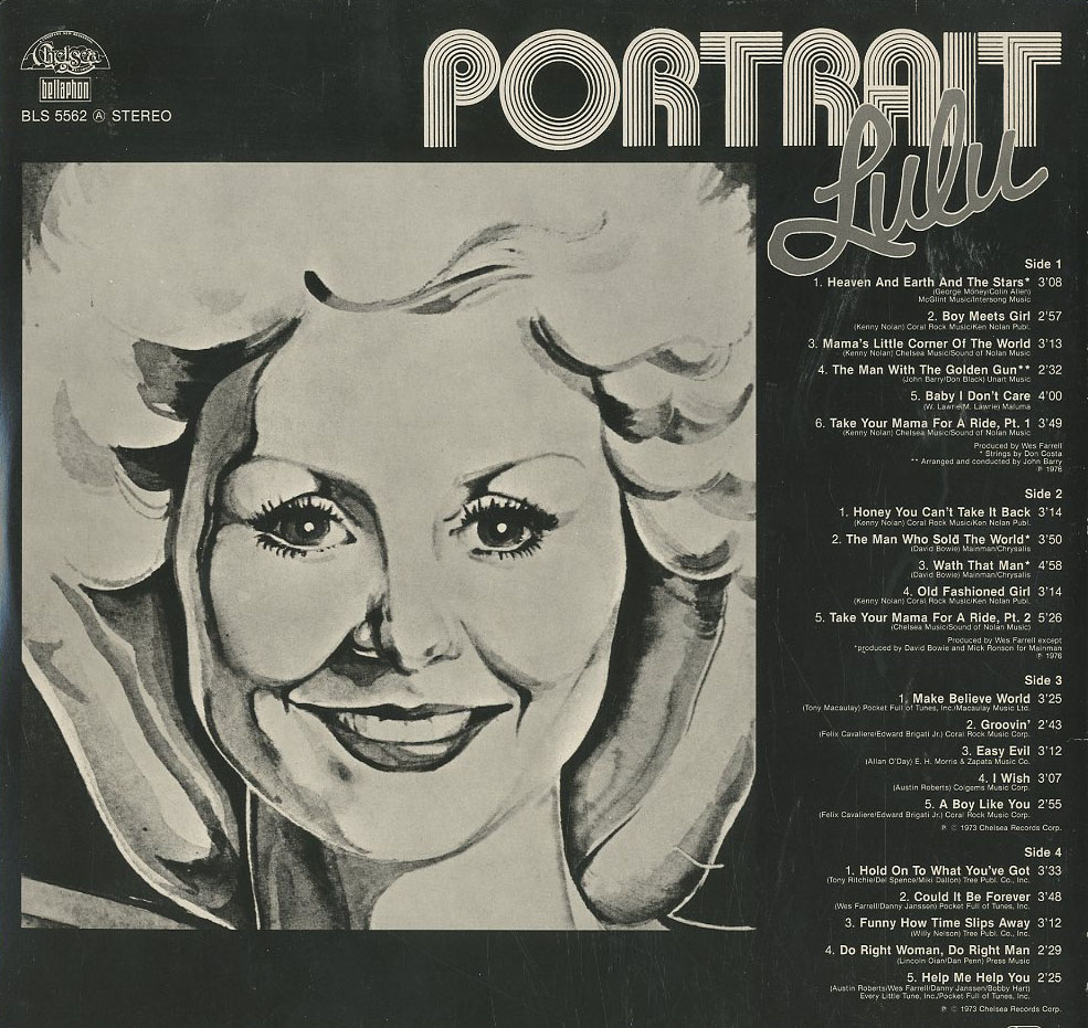 | 1 | Lulu | "Heaven And Earth And The Stars" | | 1 | Lulu | "Boy Meets Girl" | | 1 | Lulu | "Mamas Little Corner Of The World" | | 1 | Lulu | "The Man With The Golden Gun " | | 1 | Lulu | "Baby I Don`t Care" | | 1 | Lulu | "Take Your Mama For A Ride Pt1" | | 2 | Lulu | "Honey You Can`t Take It Back" | | 2 | Lulu | "The Man Who Sold The World " | | 2 | Lulu | "Wath That Man" | | 2 | Lulu | "Old Fashioned Girl" | | 2 | Lulu | "Take Your Mama For A Ride Pt. 2" | | 2 | Lulu | "Make Believe World" | | 2 | Lulu | "Groovin" | | 2 | Lulu | "asy Evil" | | 2 | Lulu | "I Wish" | | 2 | Lulu | "A Boy Like You" | | 2 | Lulu | "Hold On What You`ve Got" | | 2 | Lulu | "Could It Be Forever" | | 2 | Lulu | "Funny How Time Slips Away" | | 2 | Lulu | "Do Right Woman, Do Right Man" | | 2 | Lulu | "Help Me Help You" |