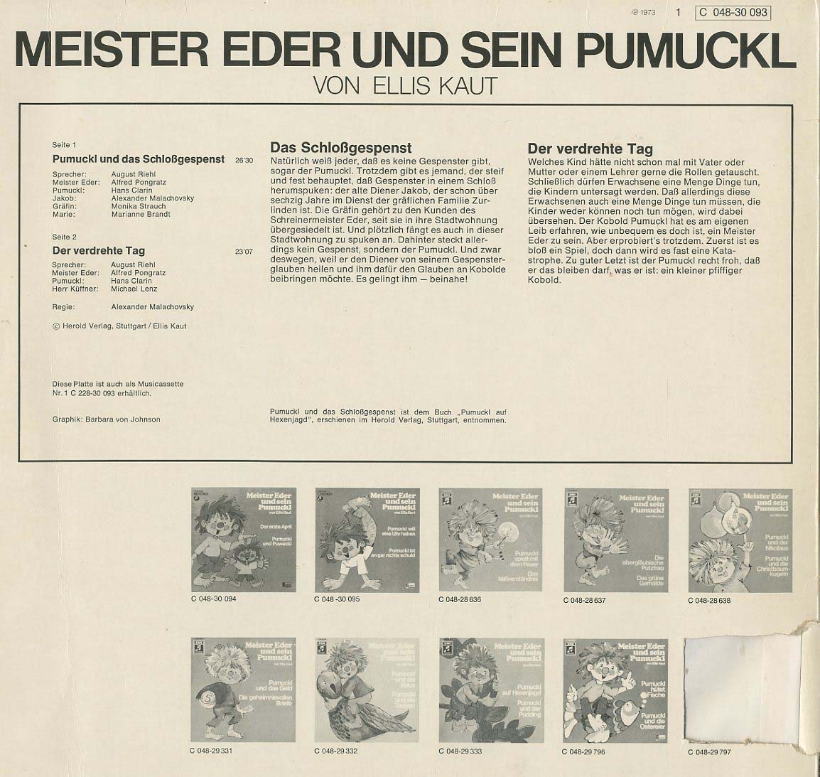 Discographie von Meister Eder und sein Pumuckl![]() EMI Columbia 1 C048-30 093 Meister Eder und sein Pumuckl Pumuckl und das Schloßgespenst / Der verdrehte Tag Eintrag bei DISCOGS (extern) D 1973, LP, Soundtracks Aufnahme: Stereo Zustand: vg+ / vg- (Rückseite ein kl. Foto ausgeschnitten) Diese Platte ist zur Zeit vergriffen. | ![]() Coveransicht: Meister Eder und sein Pumuckl - Pumuckl und das Schloßgespenst / Der verdrehte Tag ![]()