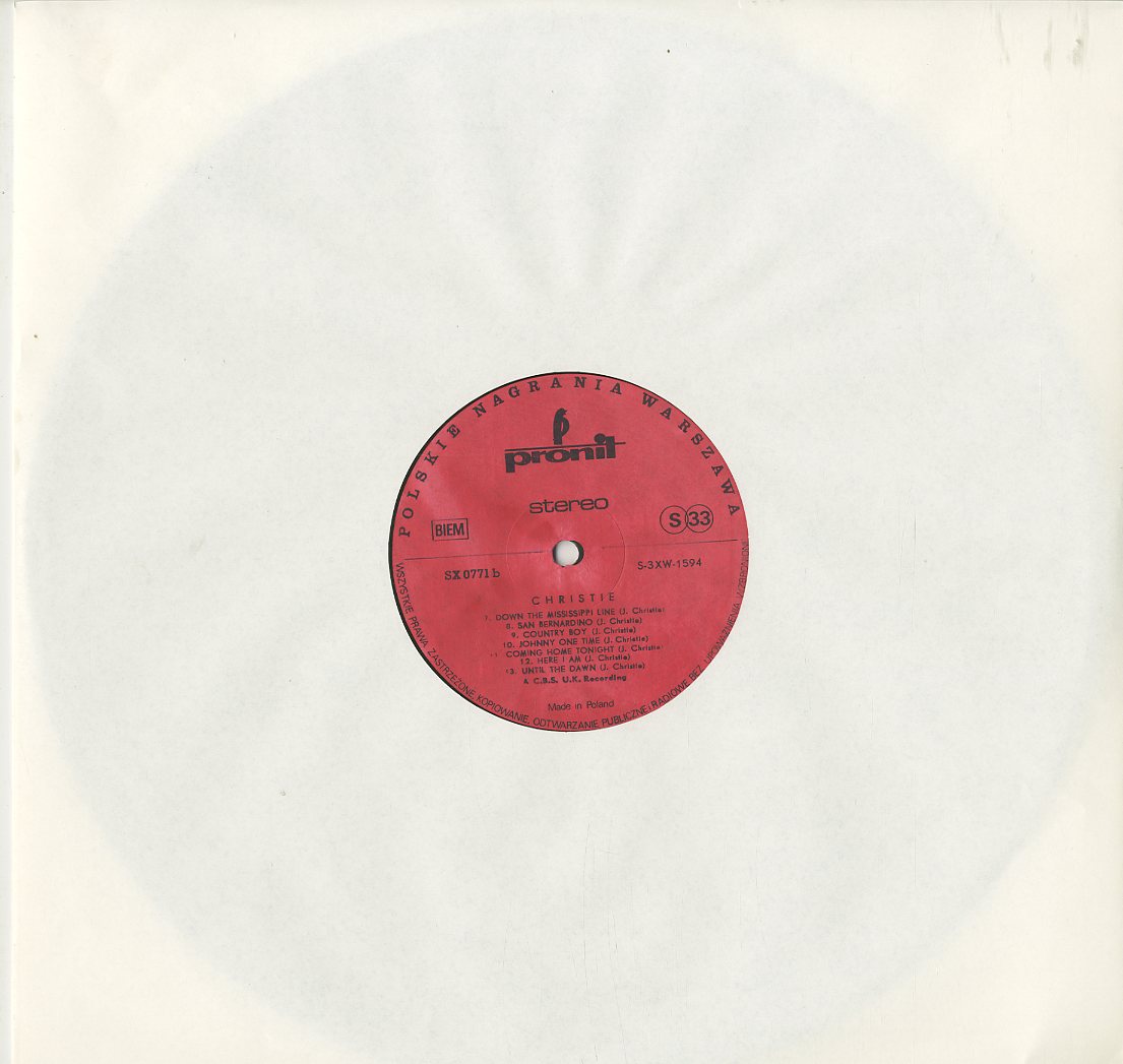 Discographie von Christie Pronit SX 0771 (rot) Christie Christie Eintrag bei DISCOGS (extern) POL 1970, LP, Pop/Rock Aufnahme: Stereo Zustand: vg (+) / vg+ (u.a. Yellow River, San Bernadino) Preis in Euro: 4,00 € Verfügbarkeitsanfrage | ![]() Coveransicht: Christie - Christie ![]()