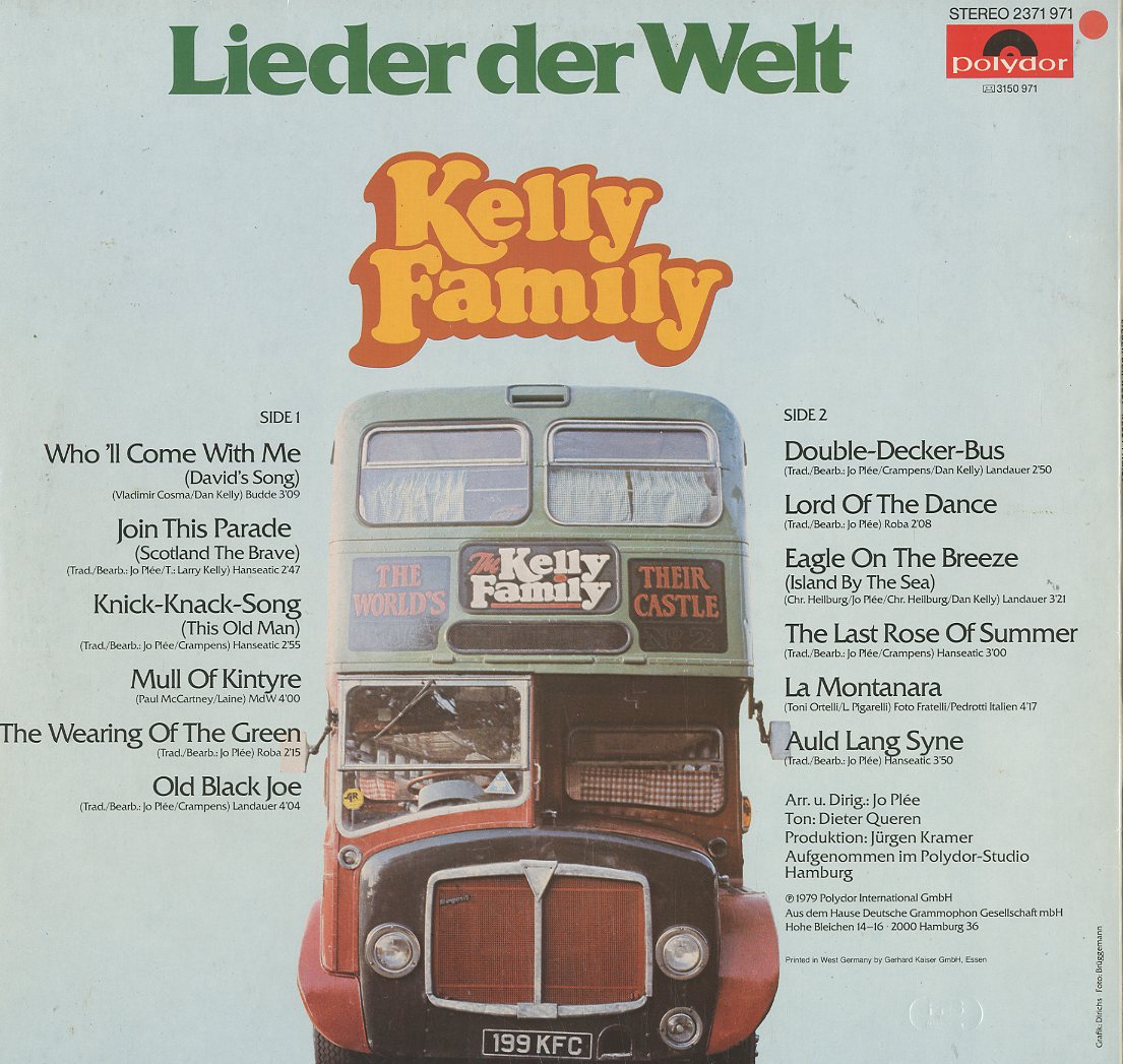 ![]() Polydor 2371 971 Kelly Family Lieder der Welt Eintrag bei DISCOGS (extern) D 1979, LP, Pop/Rock Aufnahme: Stereo Zustand: vg+ bis m- / vg+ Aufkleber: Mit dem Single Hit Davids Song sowie Mull of Kintyre, Auld Lang Syne, La Montanara u.a. Preis in Euro: 4,50 € Verfügbarkeitsanfrage | Coveransicht: Kelly Family - Lieder der Welt ![]()