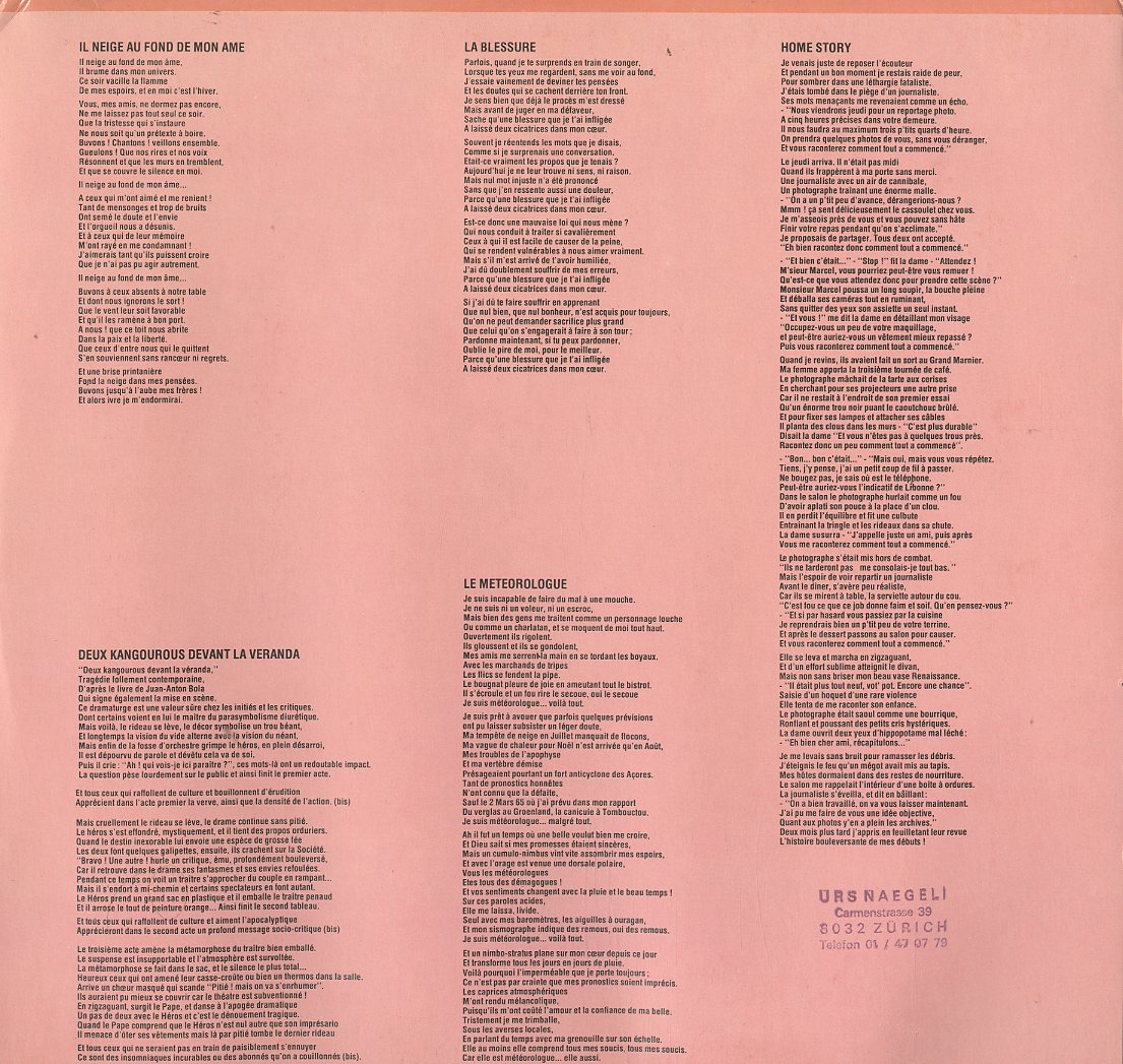 Discographie von Reinhard Mey![]() Intercord INT 1609.061 Reinhard Mey Frederik Mey - Edition Francaise Vol. 4 Eintrag bei DISCOGS (extern) D 1976, LP, International Aufnahme: Stereo Zustand: m- / mint - Klappcover mit den Texten Preis in Euro: 7,00 € Verfügbarkeitsanfrage | ![]() Coveransicht: Reinhard Mey - Frederik Mey - Edition Francaise Vol. 4 ![]()