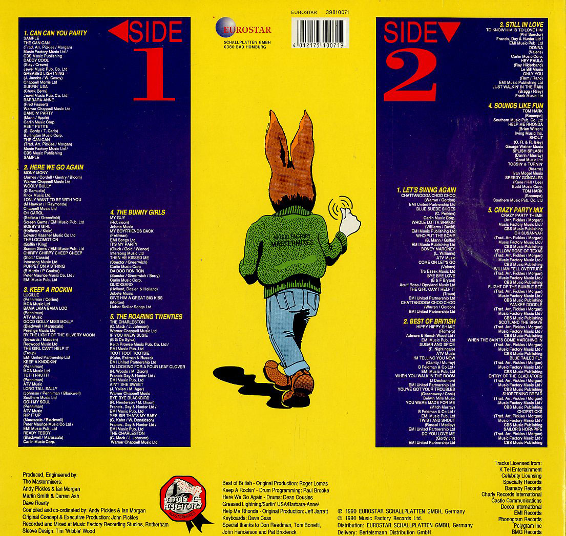 | Discographie von Jive Bunny & The Mastermixers Eurostar 39810071 Jive Bunny & The Mastermixers Its Party Time Eintrag bei DISCOGS (extern) D 1990, LP, Pop/Rock Aufnahme: Stereo Can Can You Party, Here We Go Again, Keep a Rockin, The Bunny Girls u.a. Mixe Diese Platte ist Bestandteil meiner Top 100. Nicht verkäuflich. | ![]() Coveransicht: Jive Bunny & The Mastermixers - Its Party Time ![]()