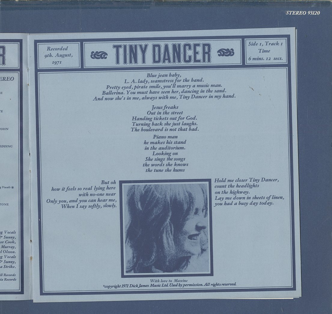 Discographie von Elton John![]() Uni 93120 Elton John Madmann Across the Water Eintrag bei DISCOGS (extern) US 1971, LP, Pop/Rock Aufnahme: Stereo Zustand: vg (+) / vg(+). obere Kante geklebt, Inklay m- Klappcover mit 10 Seiten Einlage Preis in Euro: 5,00 € Verfügbarkeitsanfrage | ![]() Coveransicht: Elton John - Madmann Across the Water ![]()