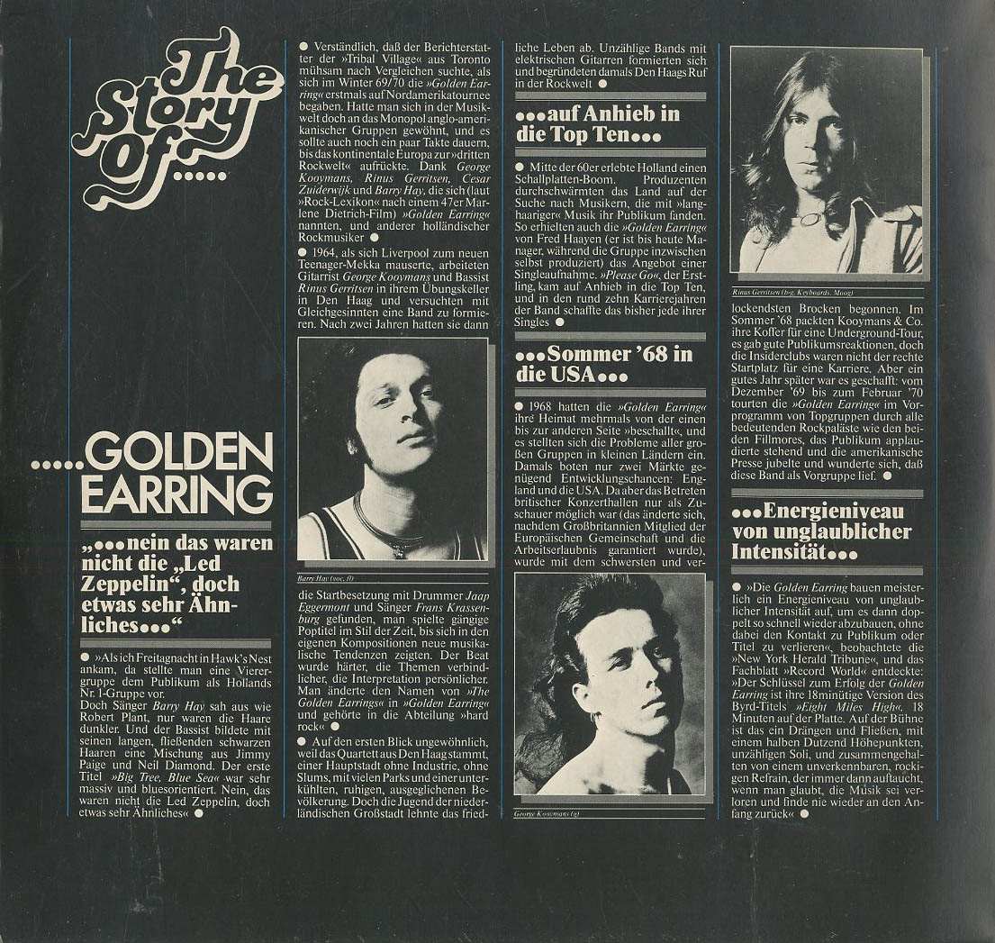 Discographie von Golden Earring![]() Polydor 2664 372 Golden Earring The Story of Golden Earring (DLP) Eintrag bei DISCOGS (extern) D 1978, LP, Pop/Rock Aufnahme: Stereo Zustand: vg+ bis m- / vg+ mit Radar Love, The Vanilla Queen u.a. (Aufn. 1969 - 1973) Preis in Euro: 6,00 € Verfügbarkeitsanfrage | ![]() Coveransicht: Golden Earring - The Story of Golden Earring (DLP) ![]()
