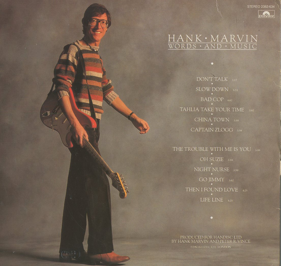 Discographie von Hank Marvin![]() Polydor 2383 v634 Hank Marvin Words and Music Eintrag bei DISCOGS (extern) D 1982, LP, GB-Rock Aufnahme: Stereo Zustand: vg+ + / vg(+) Rücken teilw. gesplissen mit Slow Down, Dont Talk, China Town u.a. Texte auf Innenhülle Preis in Euro: 4,00 € Verfügbarkeitsanfrage | ![]() Coveransicht: Hank Marvin - Words and Music ![]()