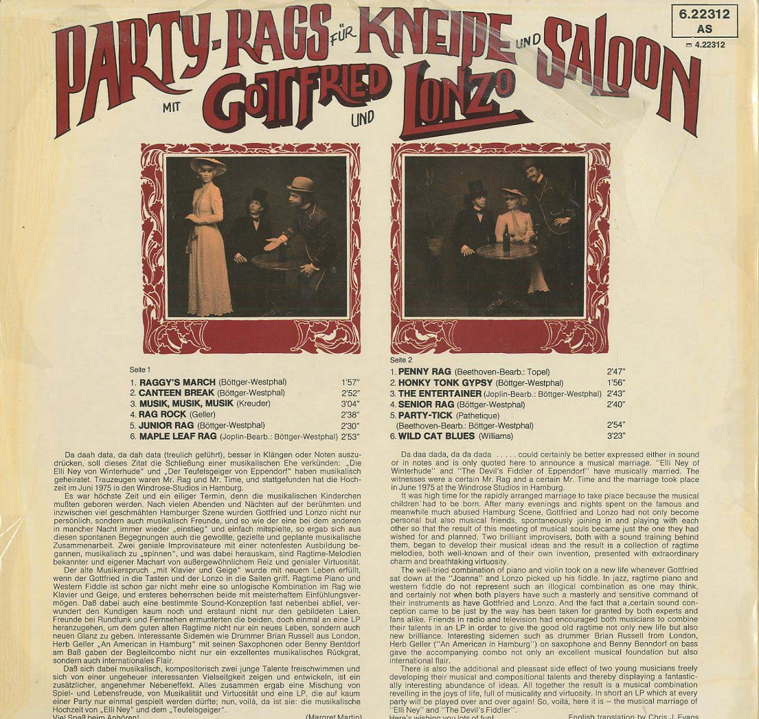 Gottfried Böttger - Parrty Rags für Kneipe und Salon mit Gottfried und Lonzo (LP)
