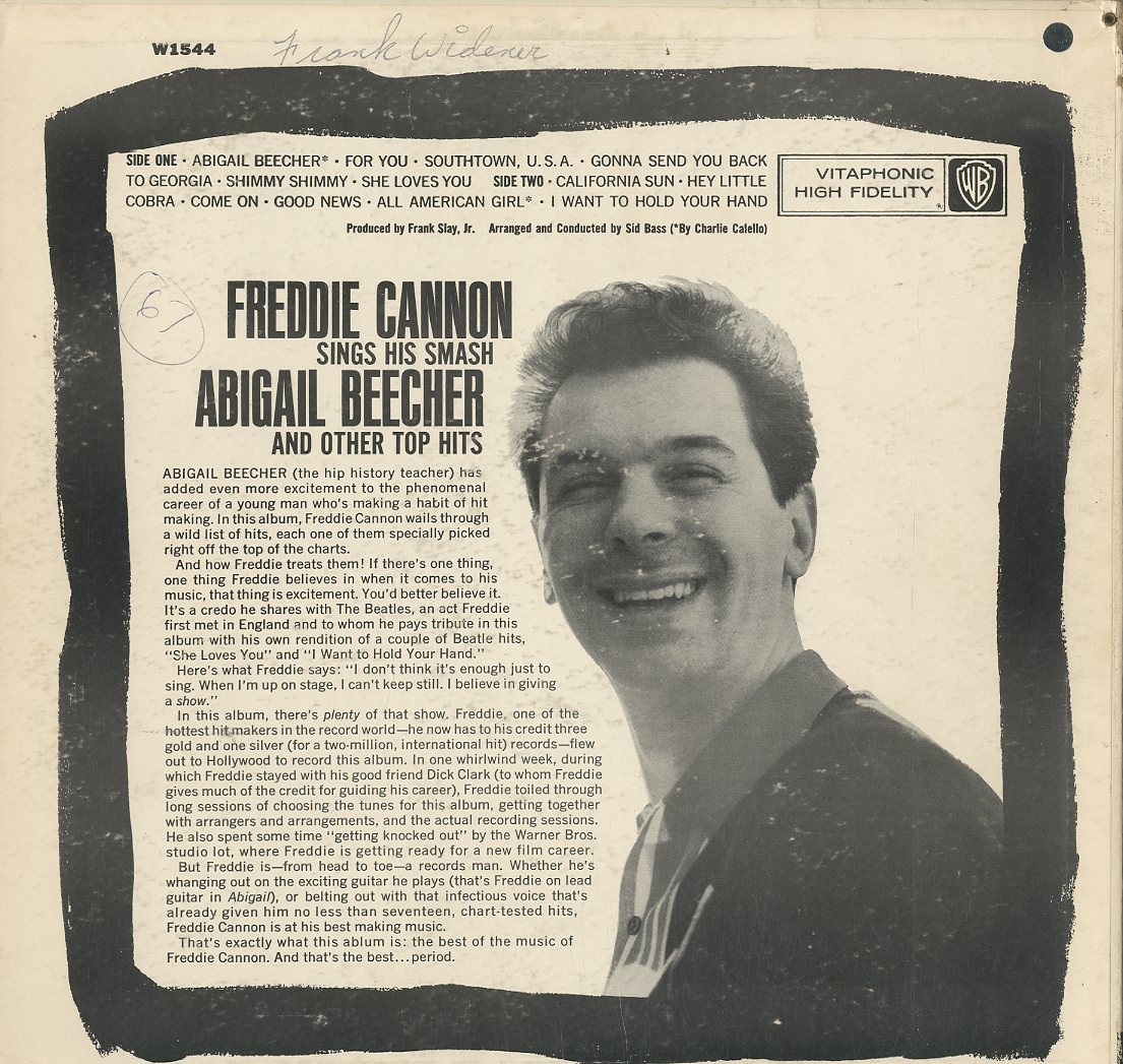 Discographie von Freddy Cannon![]() Warner Bros W 1544 Freddy Cannon Freddie Cannon Eintrag bei DISCOGS (extern) US 1964, LP, US-Rock Aufnahme: Mono Zustand: vg+ / vg mit Gonna Send You Back to Georgia ; California Sun; I Want To Hold Your Hand u.a. Diese Platte ist zur Zeit vergriffen. | ![]() Coveransicht: Freddy Cannon - Freddie Cannon ![]()