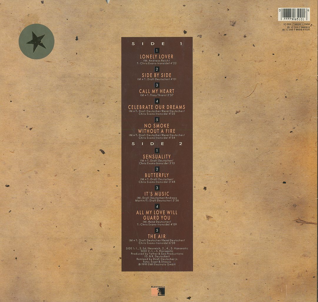 ![]() EMI 1C 066 7 96510 1 Mixed Emotions Side By Side Eintrag bei DISCOGS (extern) D 1991, LP, Pop/Rock Aufnahme: Stereo Zustand: m- / vg(+) Sticker Rücks. und Cut oben sowie Lonely Lover; Call My Heart; Celebrate Our Dreams; Butterfly (Deutscher) u.a. Preis in Euro: 5,00 € Verfügbarkeitsanfrage | ![]() Coveransicht: Mixed Emotions - Side By Side ![]()