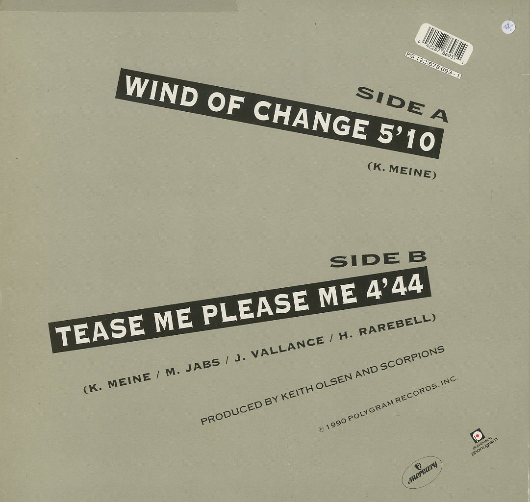 Discographie von The Scorpions![]() Mercury 878 693-1 The Scorpions Wind Of Change / Tease Me Please Me (45 RPM MAXI) Review der Schallplatte (extern) Eintrag bei DISCOGS (extern) F 1990, LP, Pop/Rock Aufnahme: Stereo Zustand: vg+ / vg+ Diese Platte ist zur Zeit vergriffen. | ![]() Coveransicht: The Scorpions - Wind Of Change / Tease Me Please Me (45 RPM MAXI) ![]()