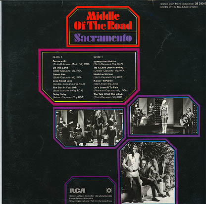 Discographie von Middle Of The Road![]() RCA Victor 28 313-5 Deutscher Schallplattenclub Middle Of The Road Sacramento D 1972, LP, Pop/Rock Aufnahme: Stereo Zustand: vg+ Katalogpreis: 27,20 € Diese Platte ist zur Zeit vergriffen. | ![]() Coveransicht: Middle Of The Road - Sacramento ![]()