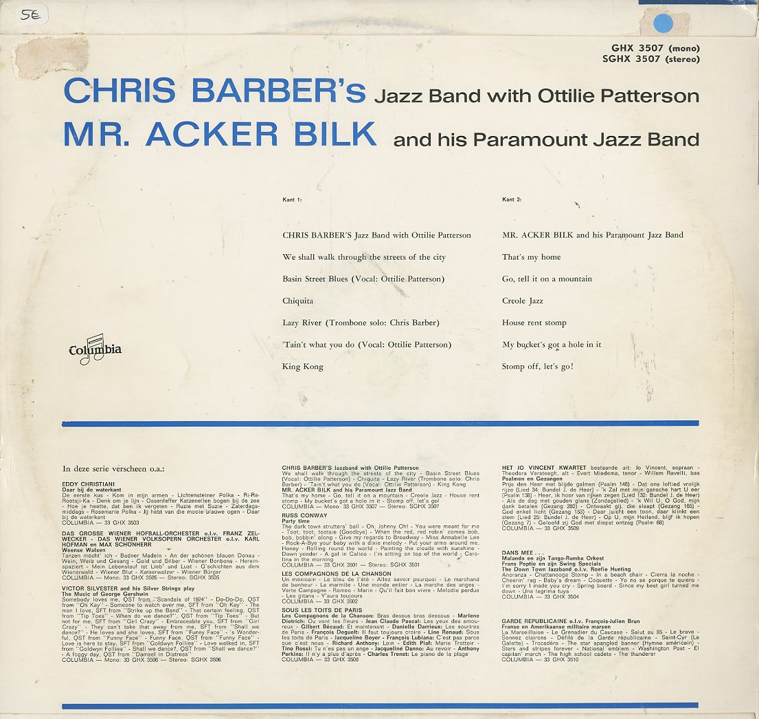 Barber: We Shall Walk Through The Valley, Lazy River, Basin Street Blues u.a./ Bilk: Thats My Home, Go Tell It On the Mountain, Creole Jazz, My Bucket´s Got A Hole In it u.a.