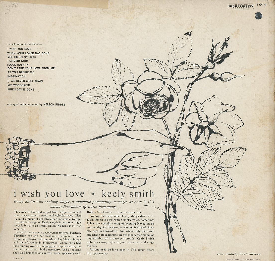 ![]() Capitol T 914 Keely Smith I Wish you Love Eintrag bei DISCOGS (extern) US 1958, LP, Easy Listening Aufnahme: Mono Zustand: vg / vg (Rücken aufgeplatzt, Rücks. erwas fleckig)) sowie Fools Rush In, Imagination u.a.m. (erste Solo LP) Preis in Euro: 6,00 € Verfügbarkeitsanfrage | ![]() Coveransicht: Keely Smith - I Wish you Love ![]()